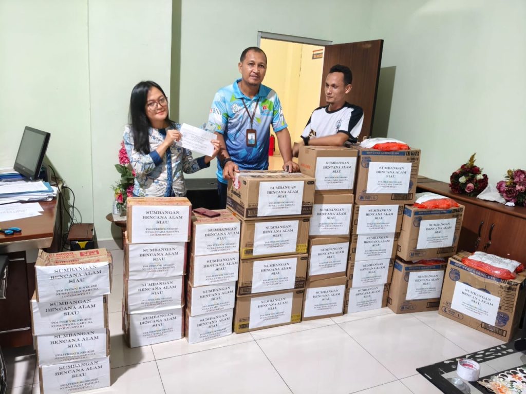 Untuk itu kami menyampaikan terima kasih kepadamasyarakat Sangihe yang sudah memberikansumbangan melalui mahasiswa Polnustar. Semogasumbangan ini, bisa meringankan beban korbanterdampak bencana alam di Siau Barat dan SiauTimur Kabupaten Kepulauan, Sitaro. Melaluikegiatan ini, Politeknik Negeri Nusa Utara menegaskan komitmennya untuk senantiasa hadirdan berperan aktif dalam kegiatan kemanusiaan, sertamemperkuat nilai solidaritas di lingkungan sivitasakademika dan masyarakat sekitar.