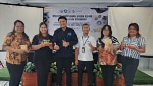 Berikutnya, untuk mendorong inovasi produk, digelar Workshop Diversifikasi Produk Olahan Perikanan dan Kebaharian pada 28-29 Oktober 2025. Workshop ini menghadirkan narasumber dari Balai Besar Pengujian Penerapan Produk Kelautan dan Perikanan (BBP3KP) Jakarta, Kementerian Kelautan dan Perikanan. Para dosen Program Studi Pengolahan dan Penyimpanan Hasil Perikanan (P2HP) serta mitra UMKM binaan secara aktif terlibat untuk mengeksplorasi formula dan varian produk olahan yang memiliki nilai jual tinggi, seperti pillus tuna, sosis tuna, dan sea salt caramel cookies tuna.
